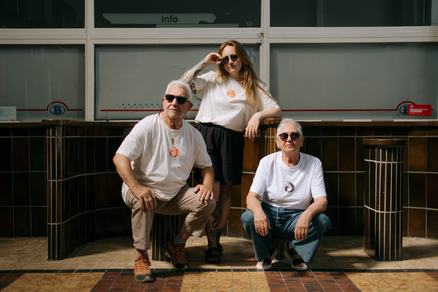 Seaside traditions, family shrimp tales and the rhythm of ocean life shaped this design. A spiral with a wink to life beneath the surface, now handprinted on organic premium shirts.